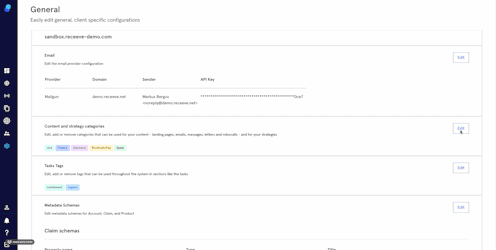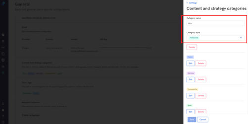 Here you can edit, add or remove categories you can use for your content and strategies: