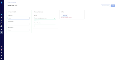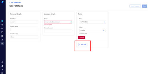 Clicking on Create User will take you to a page where you can add the Personal Details, Account Details and Roles of the new user user.