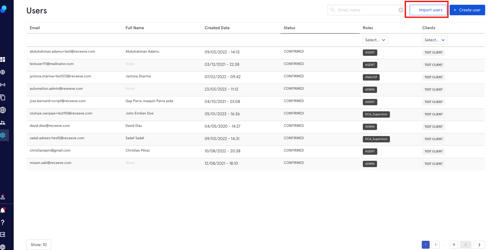 - Click Import users at the top right corner of the page.