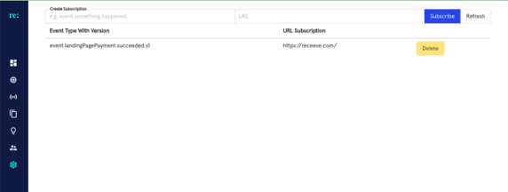 Webhooks are categorized by event, such as when a payment succeeds or fails, or when an SMS is clicked or bounced. Each event’s data in receeve can be consumed through webhooks to the destination you prefer. Other implementations can also be applicable.