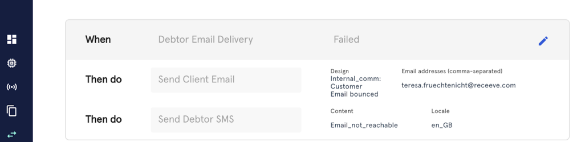 Whenever an email delivery to your customer (debtor) fails, the system will: