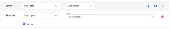 A consumer gets an email, goes to the landing page and checks the instalment options. Then, our customer closes the browser. That triggers an event, and you can setup a reaction to it. Let’s say in this case you'd like to have a set of steps inserted into the main strategy that’s being executed for this claim. You would simply select 'insert path' and then proceed to choose a specific path.