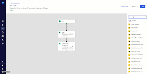 - On the step library, locate the 'Charge payment mandate' step under the Claims section (Yellow) and then drag it to your strategy. You may also look for the step by typing in the Search box.