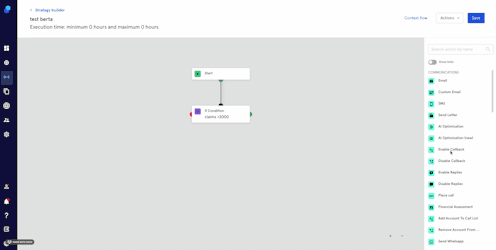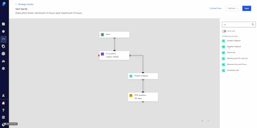 You have created a Strategy that has an "if Condition" step asking whether the amount is over 3000 € as you'd like to enable call backs for claims over this specific amount. The next step would be to drag and drop the step to enable it in your strategy so claims that fulfill this condition can request a call.